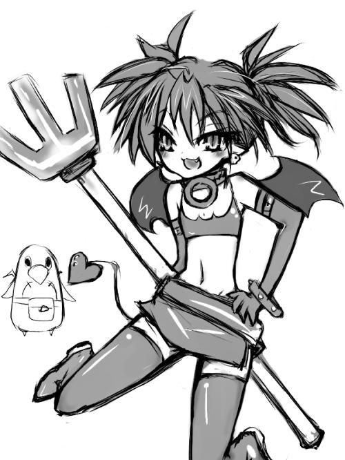 エトナ必死で資料見ながら描いてたんですが、これ2の資料も混じってます。女の子ってムズカシイー。あと後ろの腐ったピッコロみたいなのは愛すべきプリニー隊。もっと描けない。